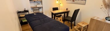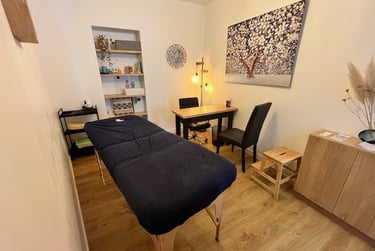 Le soin se déroule sur une table de massage ou assis en fonction des cas. Quoi qu'il en soit, je veille à ce que vous soyiez confortablement installé pour vous relâcher.